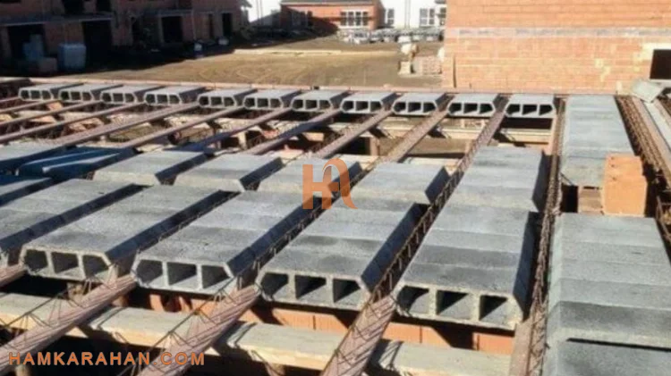 - همچنین، میلگردهای تقویتی در دهانههای بلند و در محل تکیهگاهها اجرا میشوند تا استحکام سقف افزایش یابد.