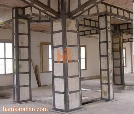 نصب ورقهای فولادی یا پروفیلها: پس از آمادهسازی سطح ستون و طراحی ژاکت فلزی، ورقهای فولادی یا پروفیلهای فولادی به صورت عمودی و افقی به دور ستون قرار داده میشوند. این ورقها معمولاً با استفاده از پیچ و مهرههای فولادی یا جوشکاری به یکدیگر و به ستون متصل میشوند. در این مرحله، اطمینان از قرارگیری دقیق و محکم ورقها یا پروفیلها به دور ستون بسیار مهم است.