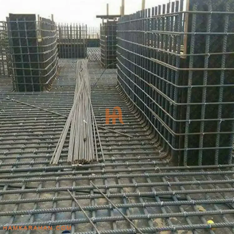 در شبکههای مشبندی پی (فونداسیون)، میلگرد جلدی به حفظ انسجام قفسه میلگردی و کنترل تغییر شکل آن کمک میکند. این موضوع بهویژه در فونداسیونهای بزرگ یا پروژههایی که حجم زیادی از بتنریزی دارند، اهمیت دارد.